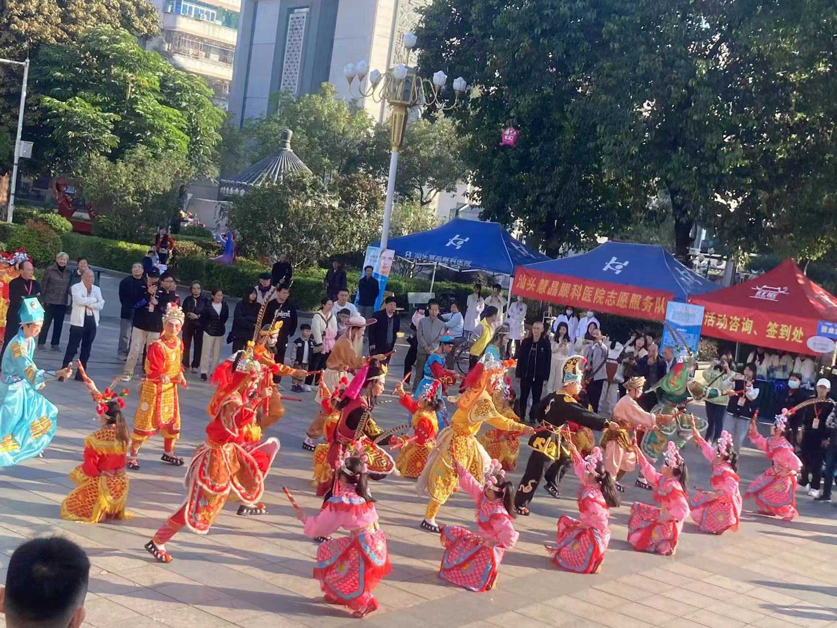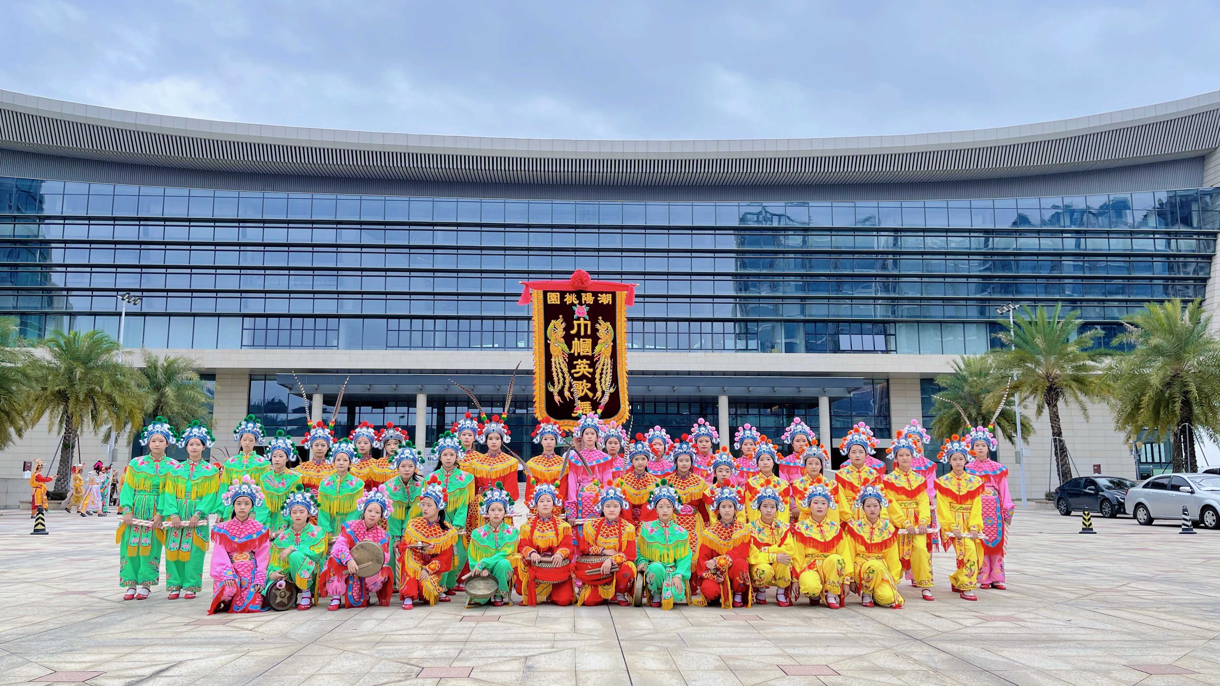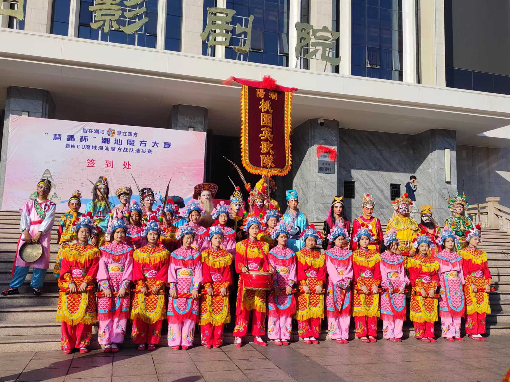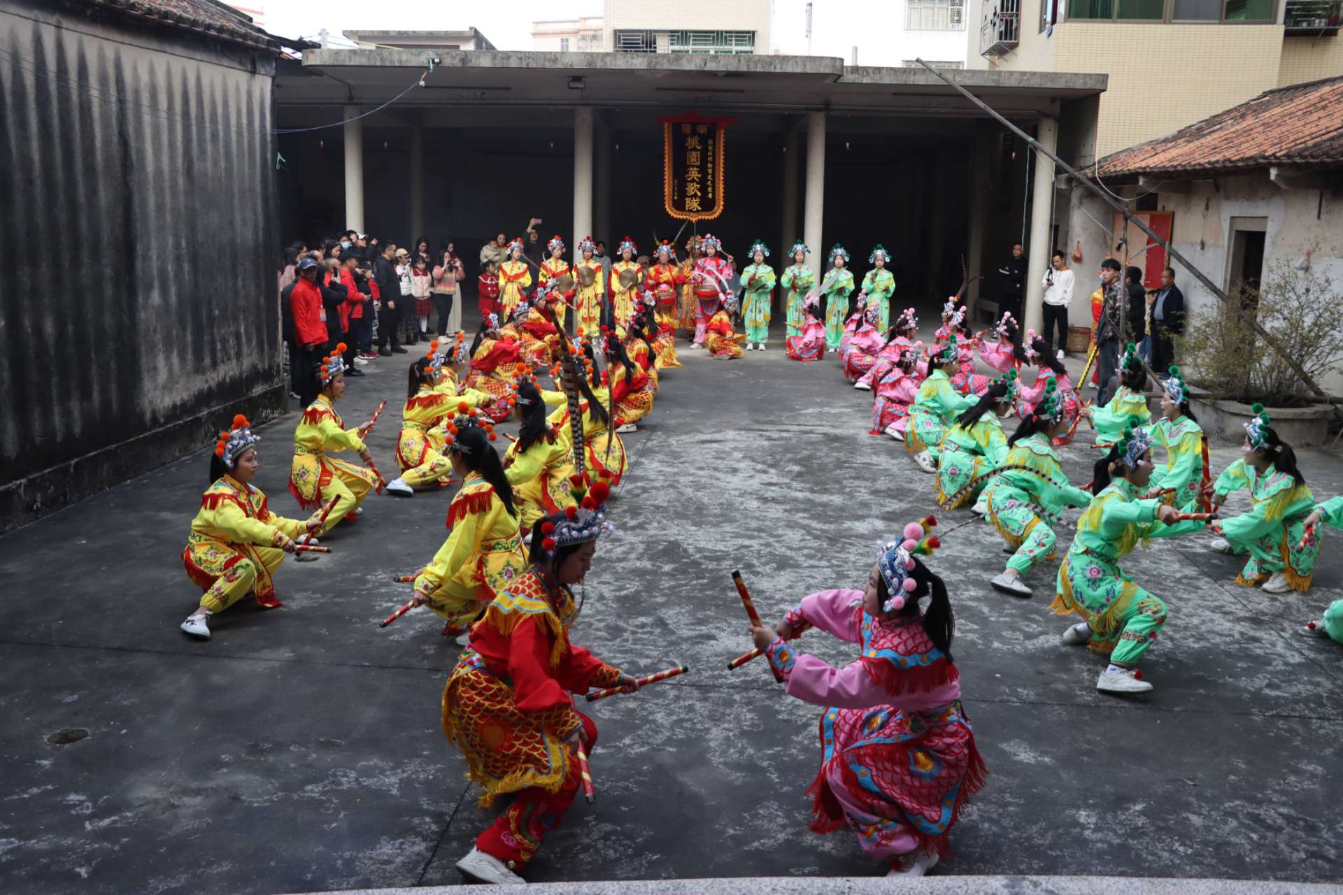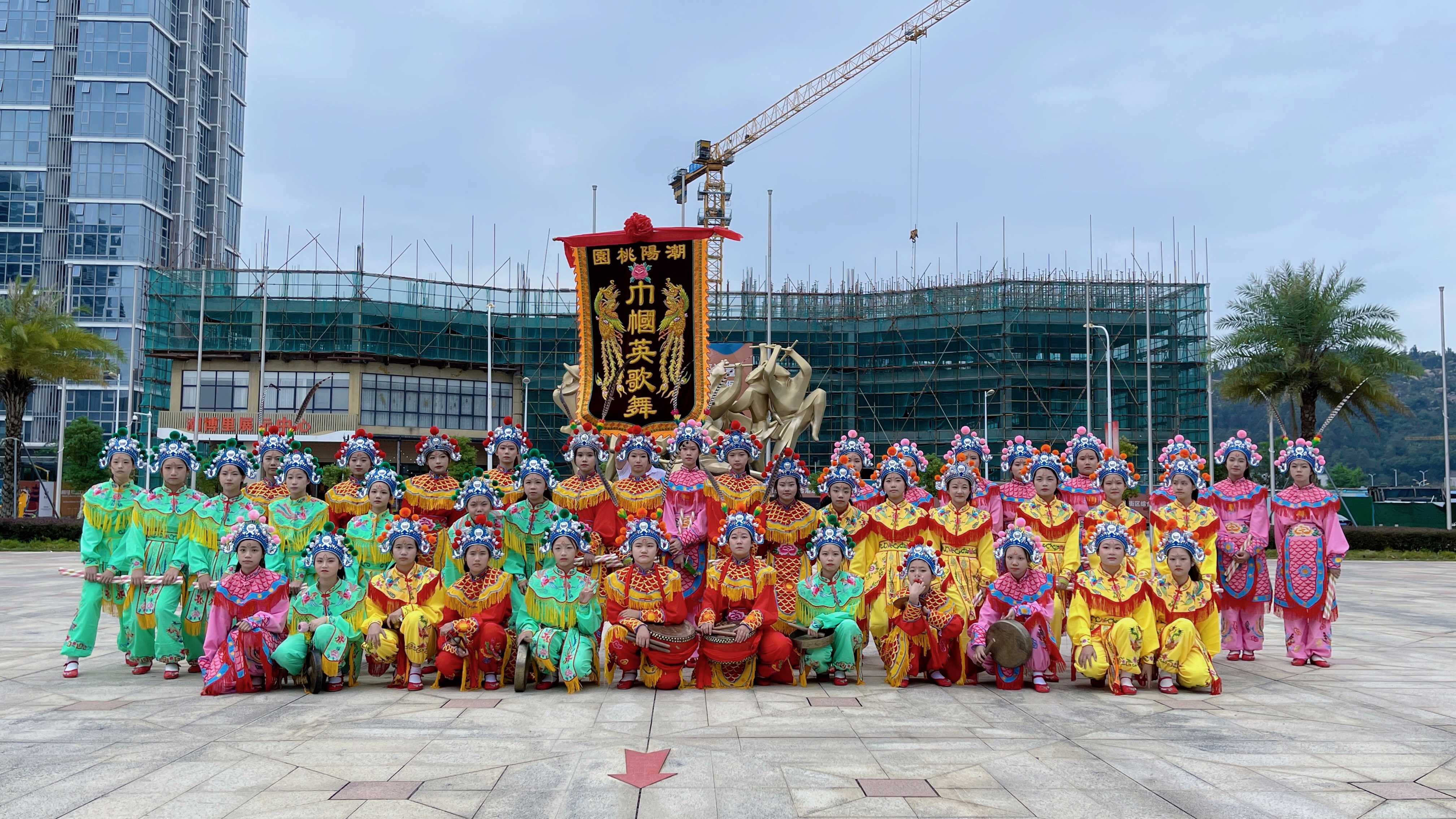 潮阳区文光桃园英歌队于1952年由桃园农协会成立,时称“棉城桃园农协会英歌队”,在1965年中断之后,于2011年重组,该队不仅有男子英歌、女子英歌还有男女对打英歌。桃园男子英歌套式打法属中快板,运用南拳散手为运槌动作。桃园女子英歌队槌法部分从咏春短拳中吸收技法,马步主要是二钳步。2023年,桃园英歌队创设了男女对打表演形式,推出“龙凤对打”“龙凤单打”等新套路与新阵型力。该队连续参加了十一届潮阳“双忠文化节”巡游活动,多次参加在我市多地举办的文化集市、非遗嘉年华等文化文艺活动,多次接受中央电视台等中央、省、市各级媒体的采访拍摄,应邀参加广东卫视中秋晚会、山东卫视《戏宇宙》等节目录制。20249月,桃园英歌队8名年轻队员“舞”上人民大会堂,潮阳英歌在中非合作论坛北京峰会文艺演出上大放异彩。2025115-17日,应邀参加“两岸小围炉——海峡两岸少儿春节联欢晚会”的节目录制。